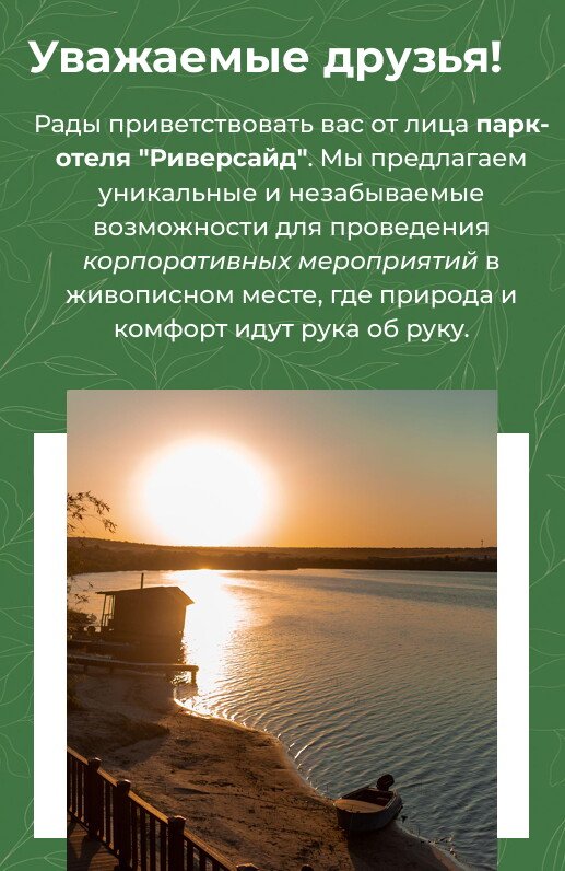 Чем парк-отель Риверсайд сможет порадовать своих гостей? Многим! Ведь у нас возможно насладиться прекрасными видами, проживанием в комфортабельных номерах и отличным сервисом.